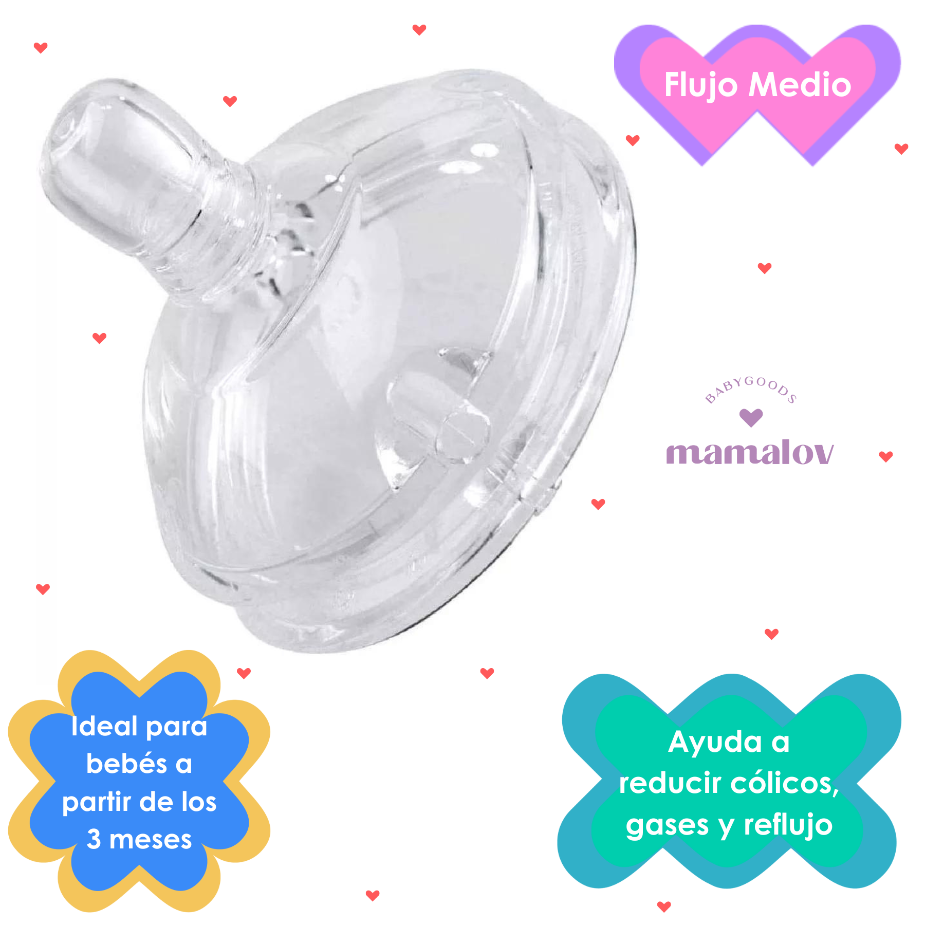 Su forma anatómica similar al seno materno ayuda a facilitar la transición de tu bebé del pecho al biberón.