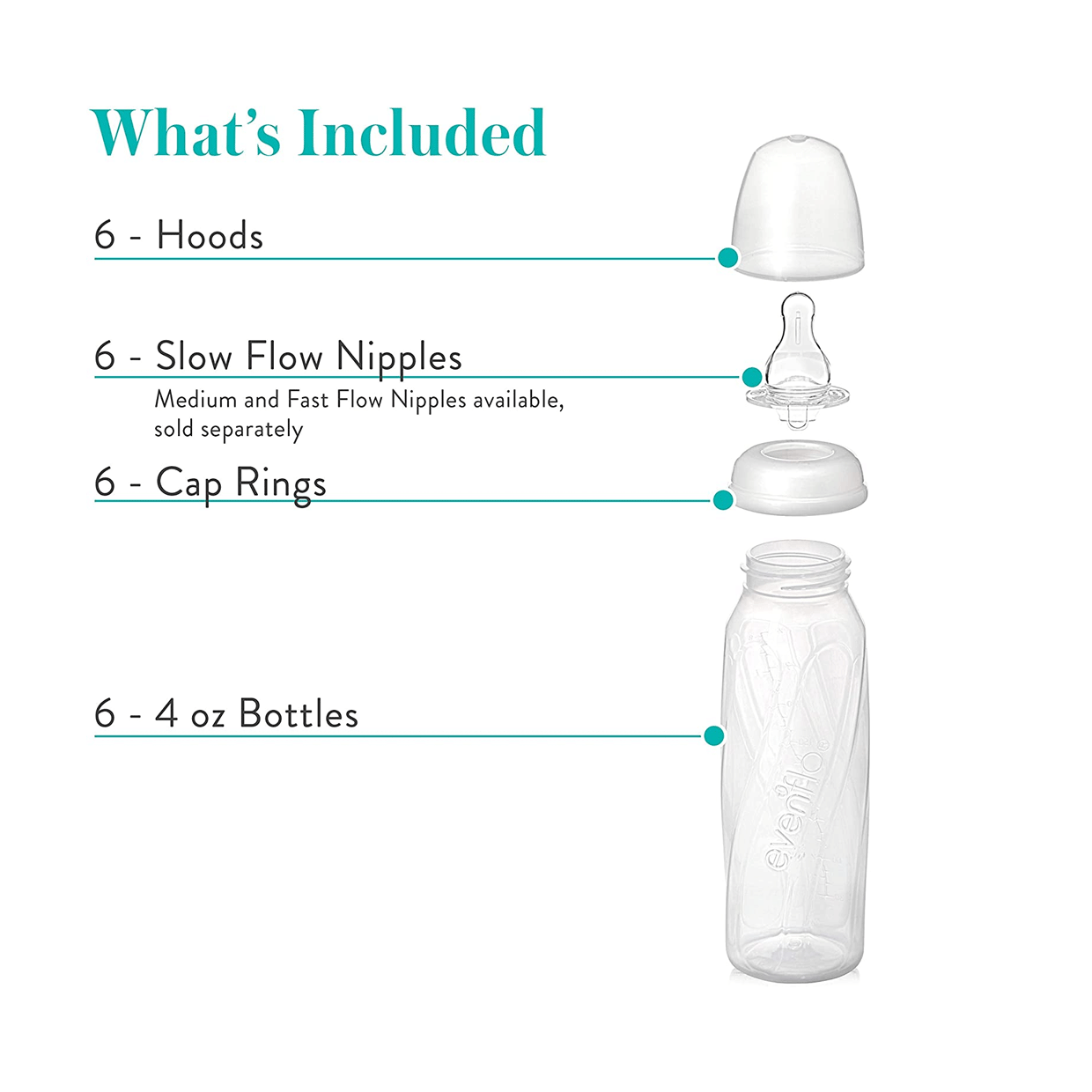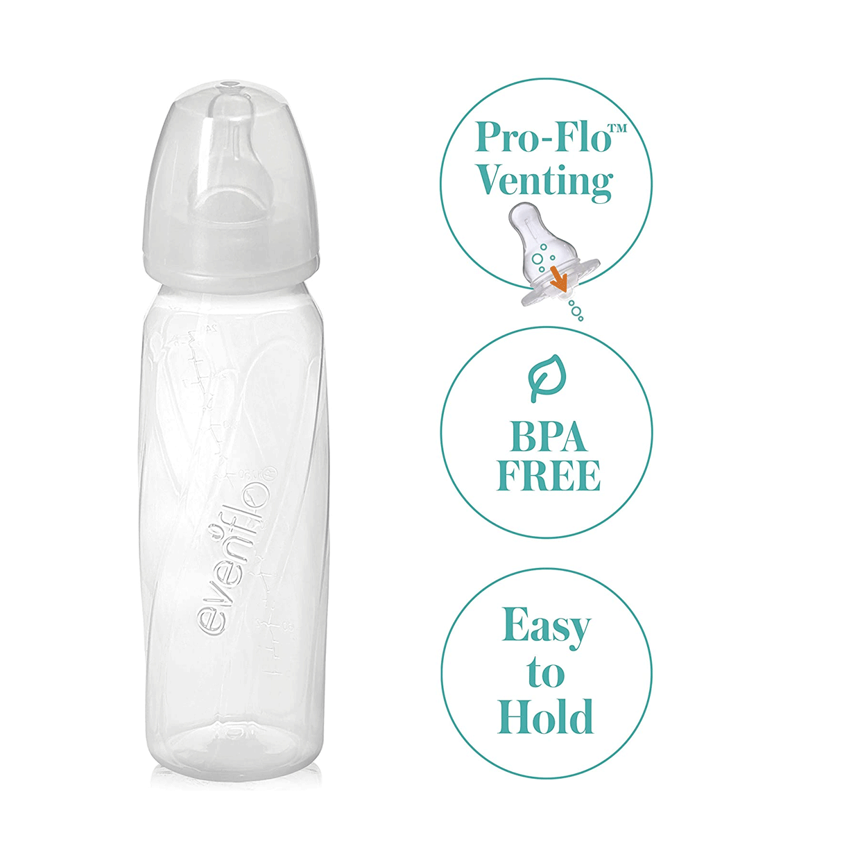 - Ventilación prémium: la tecnología patentada Proflo Vent de Evenflo Feeding fue desarrollada para garantizar que las burbujas de leche permanezcan en la botella y no en la barriga de tu bebé. Este suave sistema de ventilación de 1 pieza ayuda a reducir significativamente el potencial de cólicos, reflujo, gas y complicaciones, manteniendo a tu bebé cómodo incluso después de que haya terminado de comer.