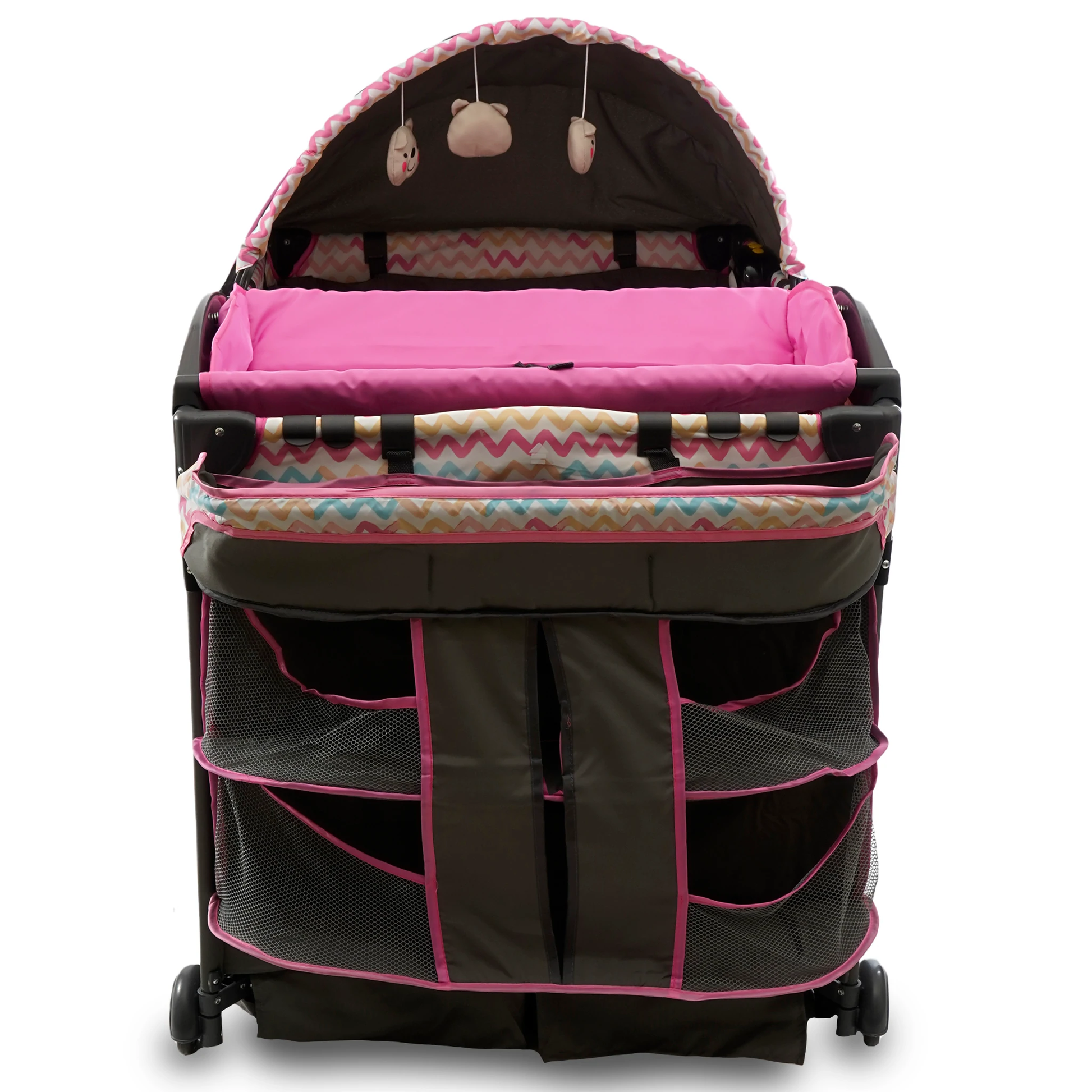 Mecedora Corral Verona, es la combinación perfecta de elegancia y comodidad. Es una cuna completa, 2 en 1 diseñada para el confort y seguridad de tu bebé y la practicidad para los papás. Cuenta con 2 niveles, el primero lo usas como cuna y el segundo cómo cuna corral además de que puede funcionar como mecedora. Con un sistema de cierre tipo sombrilla que te permita armarla en segundos. No requiere herramientas para su ensamble. Estructura en aluminio. Colchoneta acojinada para un suave descanso. Con un Práctico cambiador fácil de montar y desmontar. Incluye un módulo electrónico (Con luz, música y proyección) Con ruedas para un fácil manejo. Techo y mosquitero desmontable. Juguetero para el entretenimiento del bebé y una práctica cajonera para guardar los accesorios del bebé y tener todo al alcance de tus manos. Cuenta con una apertura lateral que te permitirá guardar los accesorios del bebé mientras lo usa como cuna y como salida del bebé cuando lo use como corral. Bolsa de viaje incluido que facilita su manejo y transportación. Todo para la llegada de esa personita tan especial!!. Edad recomendada de 0 a 3 años.