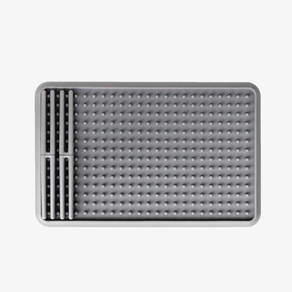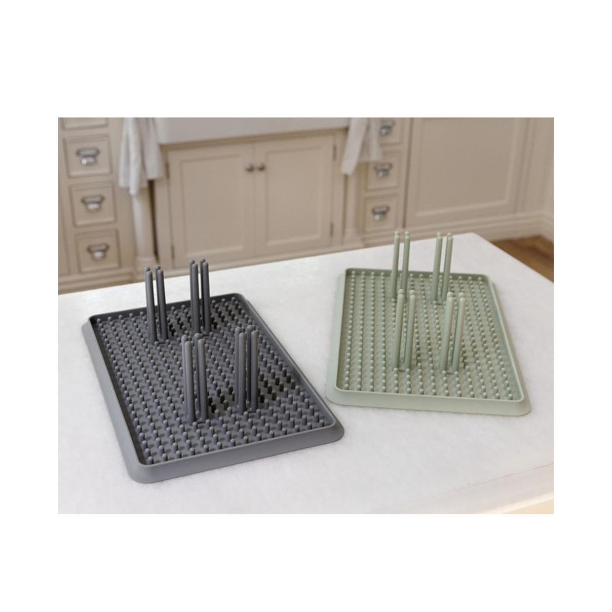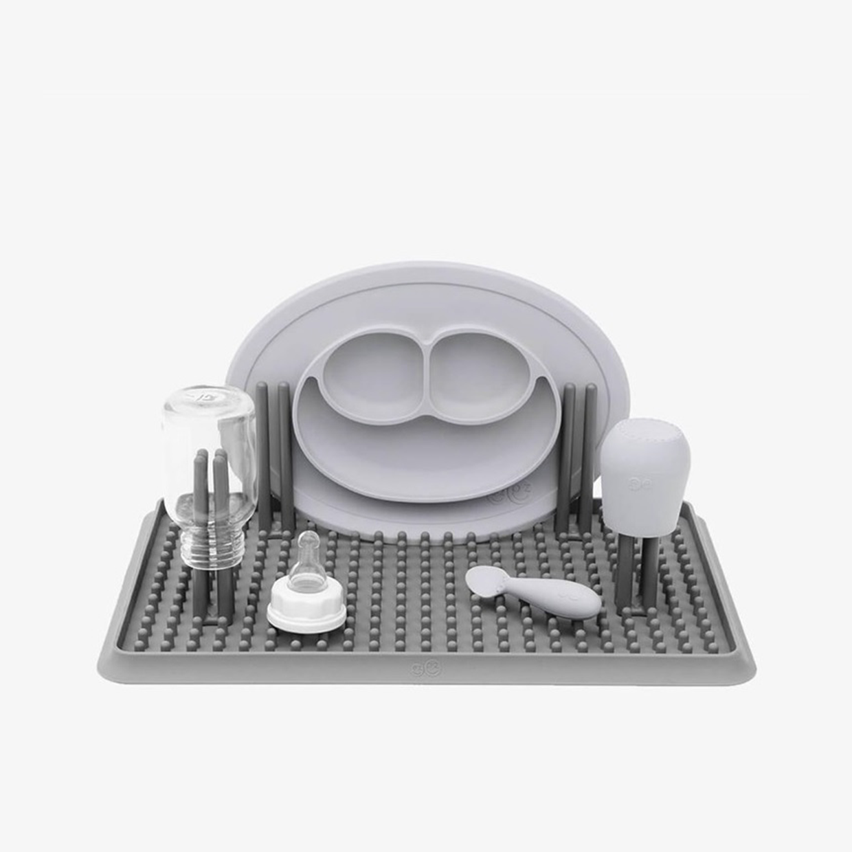 El tendedero diseñado por ezpz está especialmente diseñado para ayudar a secar y almacenar todos los utensilios básicos de comida para niños pequeños, ¡incluidos los productos ezpz! Los pestillos extraíbles se pueden personalizar para adaptarse a sus necesidades de secado de estantes.