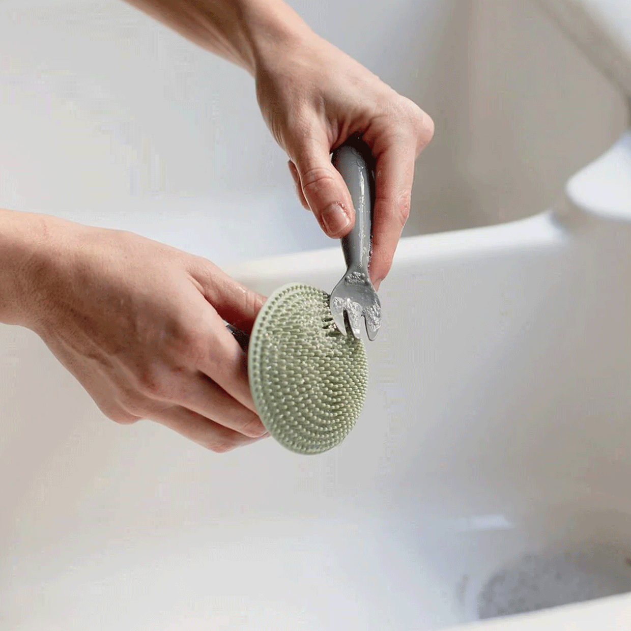 La esponja de hongos de ezpz es perfecta para lavar productos, platos, utensilios de cocina y equipo de alimentación. Debido al material de silicona, la esponja de hongo es hipoalergénica, resistente a los olores y duradera.