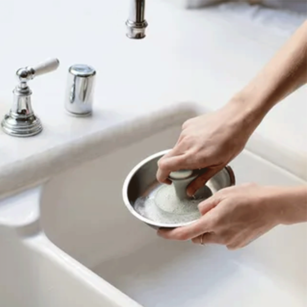 - La base de succión mantiene la esponja en su lugar después de su uso