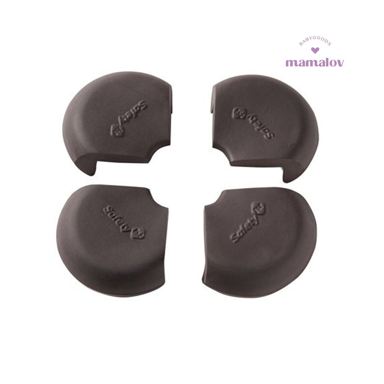 4 protectores esquineros de mesa color chocolate con forma redondeada para las orillas de los muebles.
