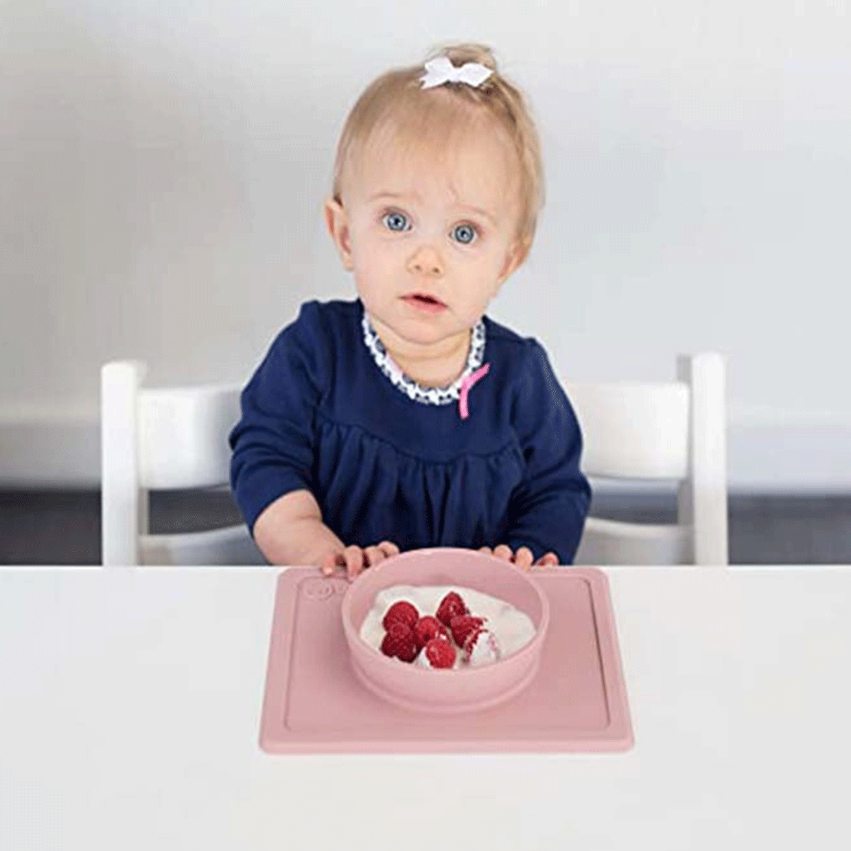 ¡La solución de EZPZ para pasear con tus pequeños! El Mini Bowl es todo en uno: Platón + Mantel que se succiona a la mesa.