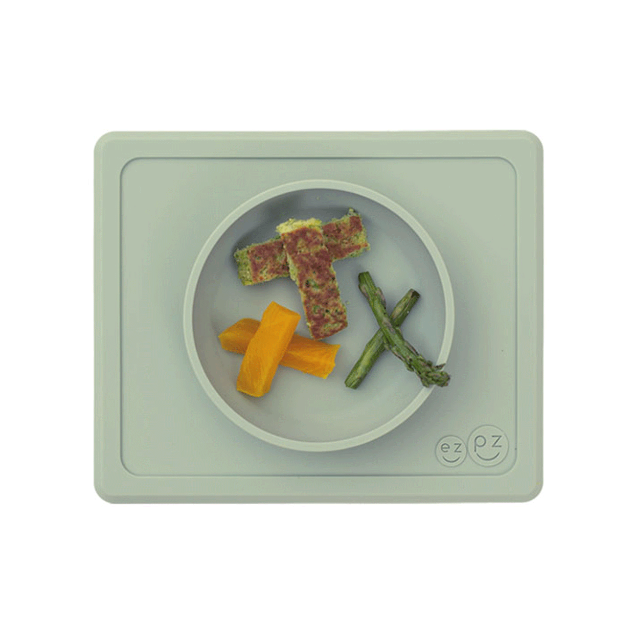 ¡La solución de EZPZ para pasear con tus pequeños! El Mini Bowl es todo en uno: Platón + Mantel que se succiona a la mesa.