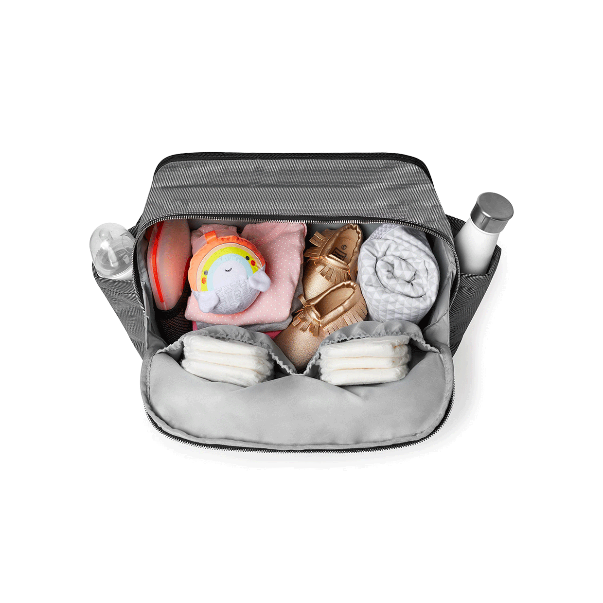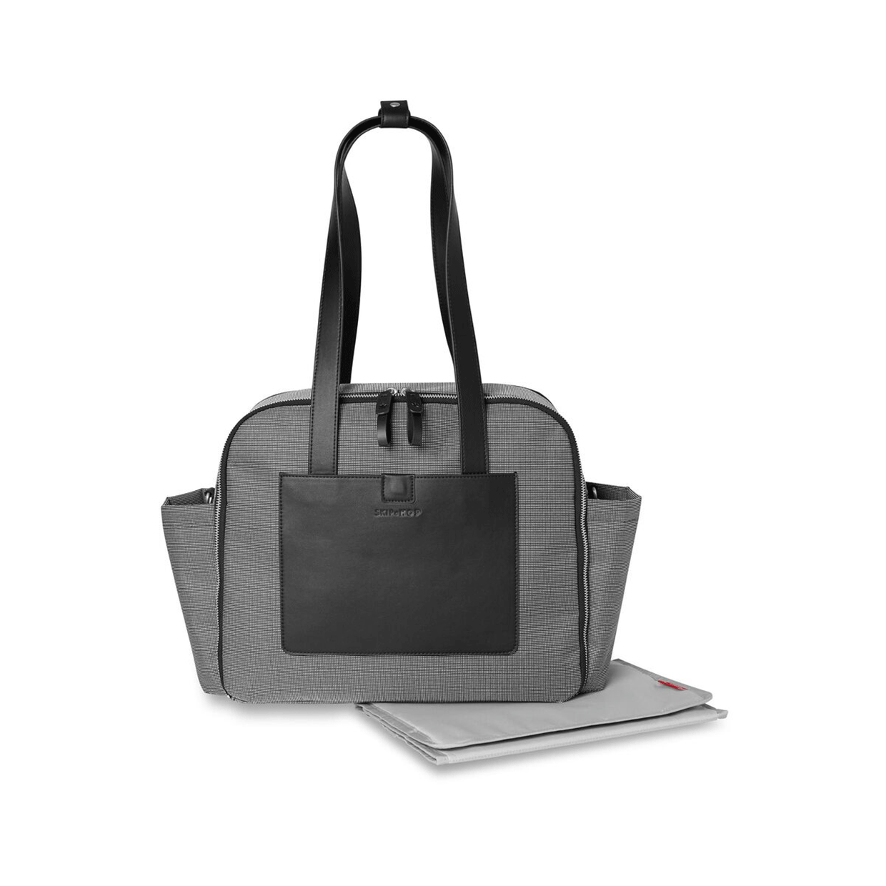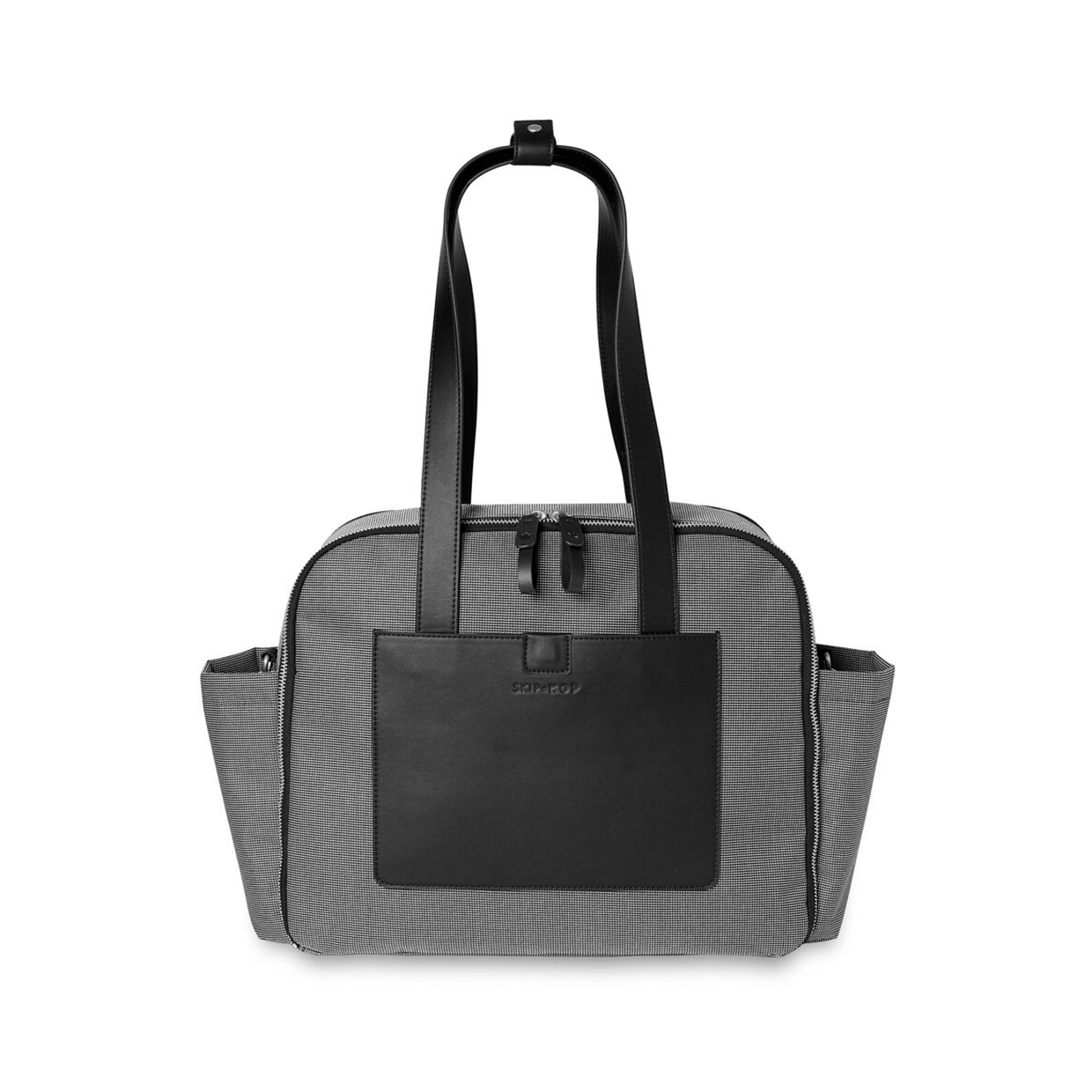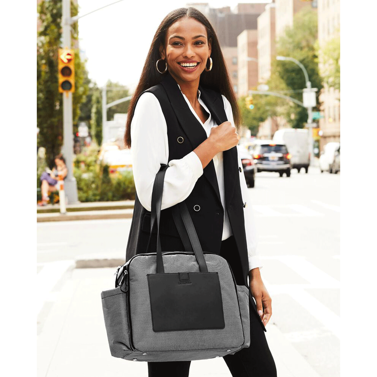 Tomando las señales del tablero de ajedrez y los patrones de cuadrícula dignos de la pista, el sobre de pañales Madison Square de Skip Hop presenta una silueta cuadrada para una versión moderna de una mamá multitarea esencial.