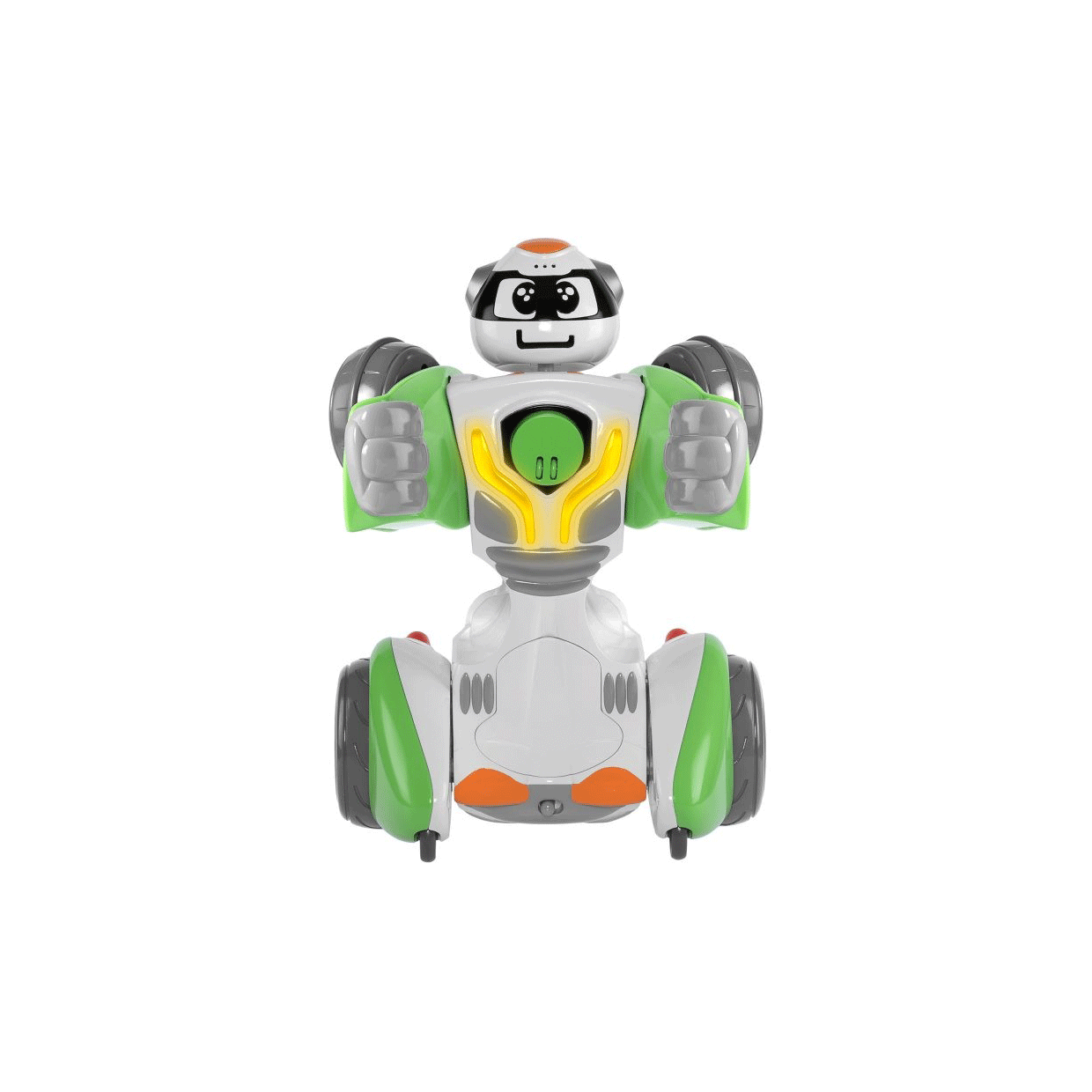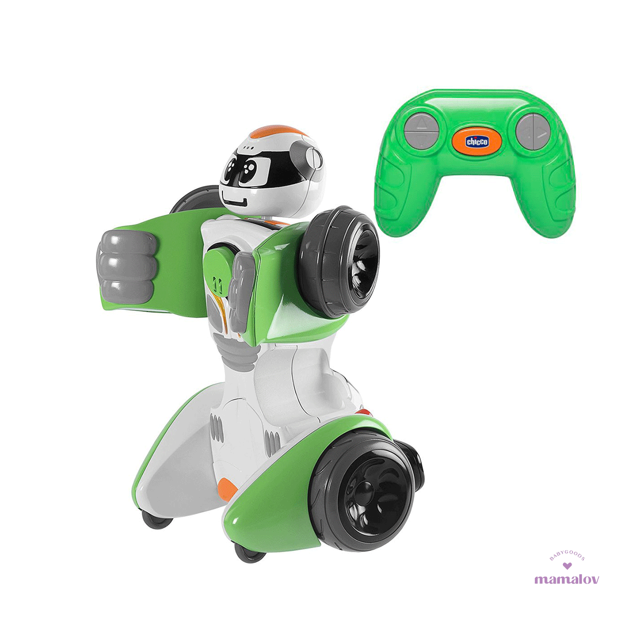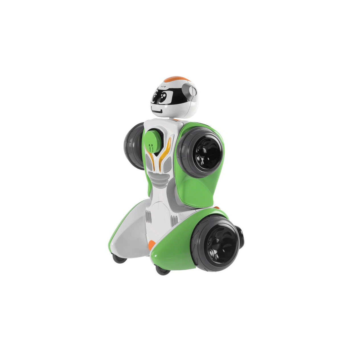 RoboChicco: 2 en 1, de coche a robot para diversión garantizada Vehículo de radiocontrol 2 en 1 que se transforma de robot a cochecito en 3 sencillos pasos. Podrás controlarlo de forma remota en cualquiera de sus 2 modos con una gran rapidez de respuesta. Posee un botón con efectos especiales para activar los diferentes efectos de luces y sonidos. VEHICULO DE RADIO CONTROL 2 EN 1 Se puede manejar de forma remota y dirigida, ya sea como robot o como cochecito. TRASFORMALO EN 3 PASOS Pasa de robot a coche o viceversa, en 3 sencillos pasos manuales que potenciaran su coordinación. CON EFECTOS DE LUCES Y SONIDOS Apretando el botón de efectos especiales podrás activar diferentes efectos de luz y sonidos.